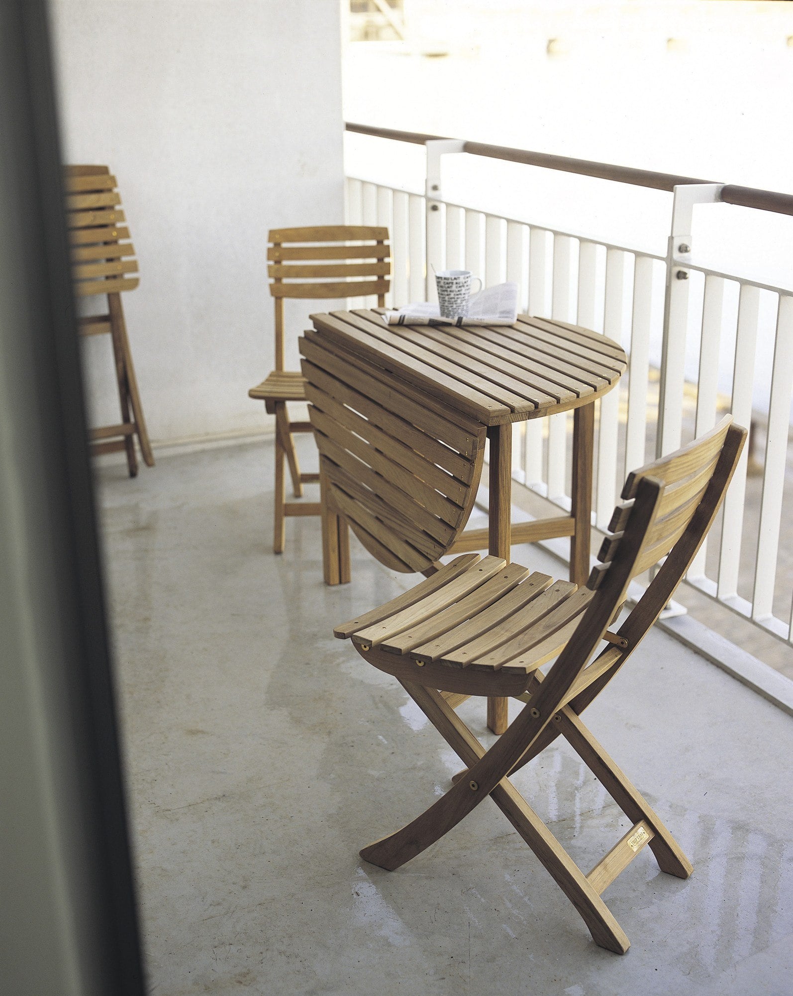 Ako terasa treba imati intimniji karakter i neće viđati gomile gostiju, mali vrtni stolovi s okruglom pločom i udobne drvene stolice s mekanim tapeciranim sjedalima i podesivim naslonima bit će savršeno dovoljni.
