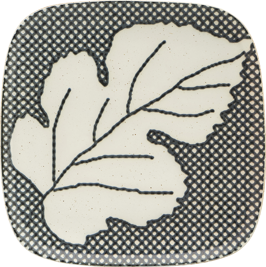 Četvrtasti tanjur s motivom lišća ima izrazito retro dojam. Mat površina, ekspresivna grafika i sivo-bijeli tonovi stvaraju originalnu cjelinu koja će privući svačiju pažnju! Tanjur je izrađen od kamenine i može se prati u perilici posuđa. Također se može koristiti u mikrovalnoj pećnici.