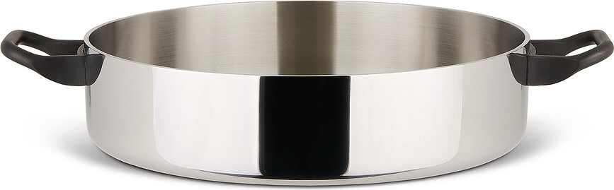 Predstavljeni niski lonac savršen je kao posuda za prženje, pripremu mesnih jela, umaka ili rižota i paelle. Lonac je izrađen od kompozita dviju vrsta čelika i jezgre od aluminija, koji je izvrstan vodič topline. Vanjska strana lonca obložena je izuzetno lijepim, sjajnim, poliranim čelikom AISI 430. Unutrašnjost lonca je od higijenskog čelika 18/10. Aluminij u sredini zaslužan je za izvrsna toplinska svojstva lonca.