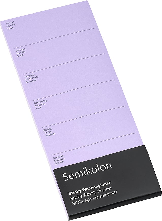Dostupne verzije:- Semikolon Tjedni Planer samoljepljiv lila, Semikolon Tjedni Planer samoljepljivi svijetloplavi, Semikolon Planer tjedni samoljepljivi smeđesivi
